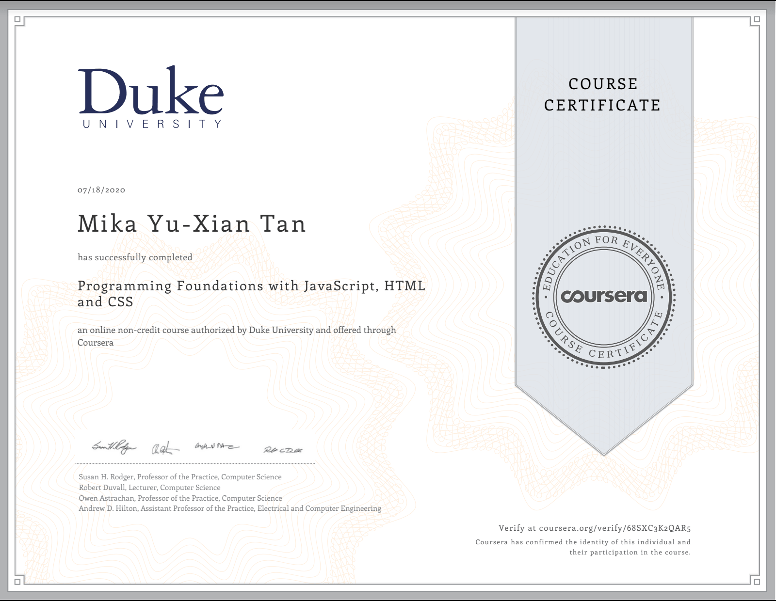 Intro to Front End Web Dev from DUKE